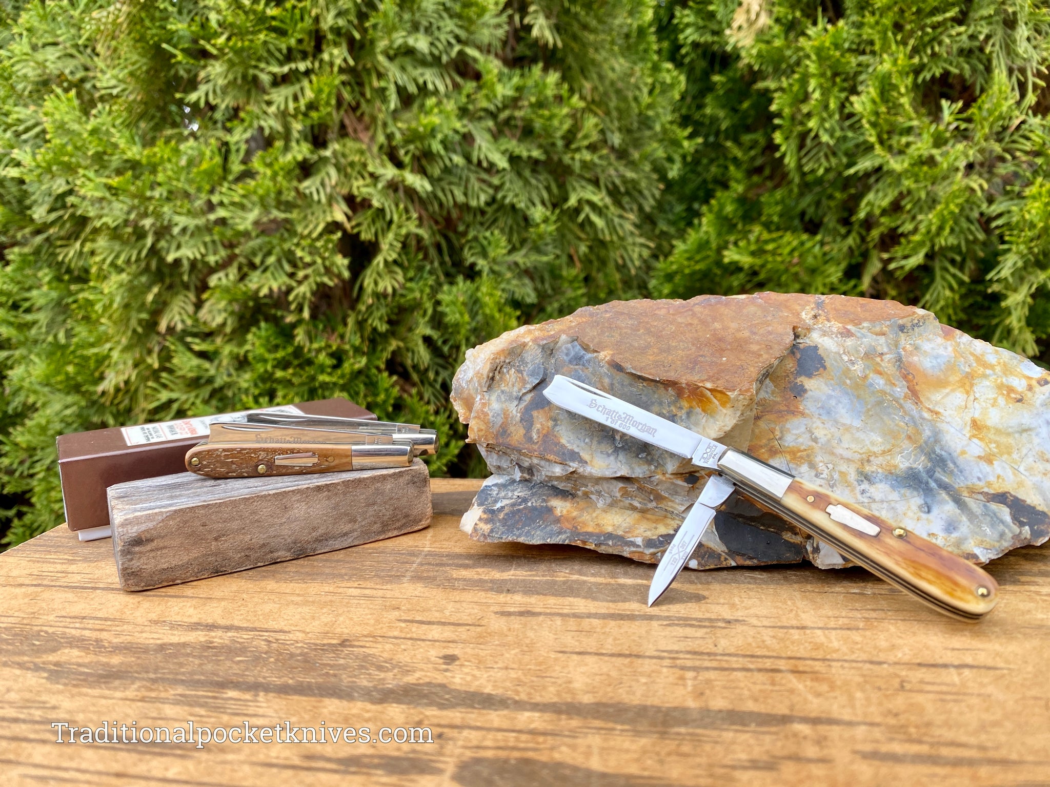 Available 05/04/2022 8PM ET.These are true Schatt&Morgan knives made in the old Queen Factory in Titusville, PA. These knives were made in 2008. These are the last true Schatt&Morgan knives made in PA.