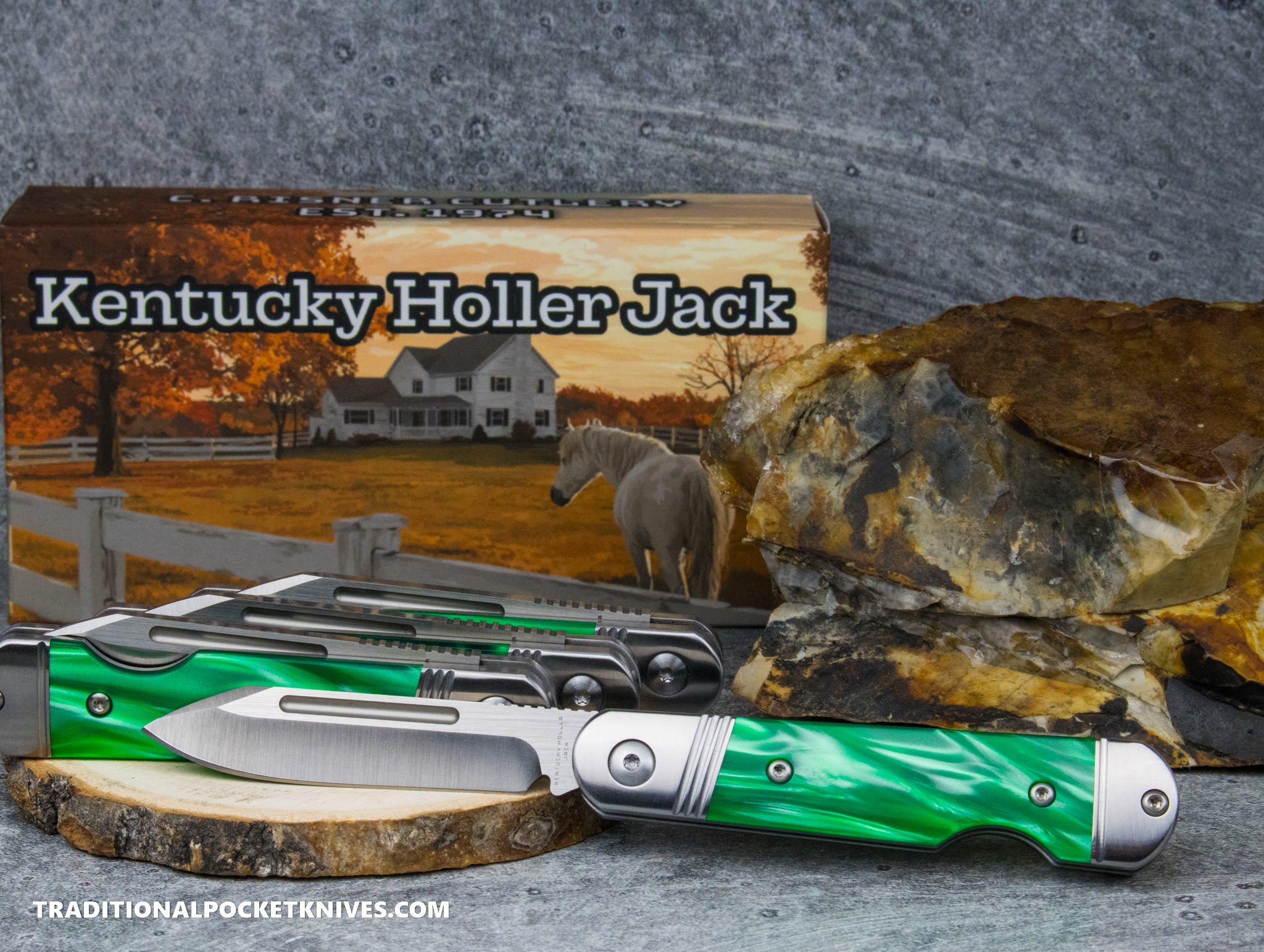 Kentucky Holler Jack: Kirinite Green Pearl Acrylic - Spearpoint 154CM