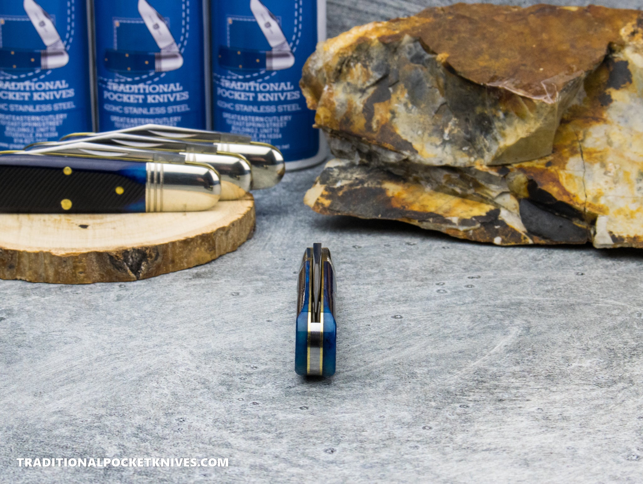 Handle Material: Navy Blue Sawcut Bone.