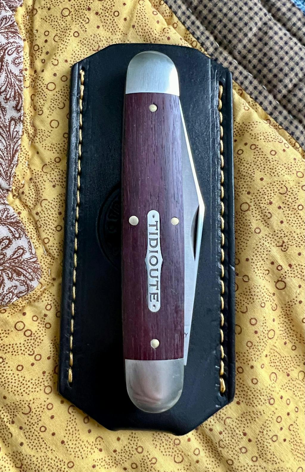 First, I use knife slips whenever I carry a slipjoint. Secondly, I like nice leather slips…this one falls into that category…well-made and has the look of quality. It IS large, so check your dimensions first…probably better described as XL…fits a large knife like the recent GEC Texas Stogie and will probably work well with folding hunter styles…bigger than most but exteremely useful and well-made.