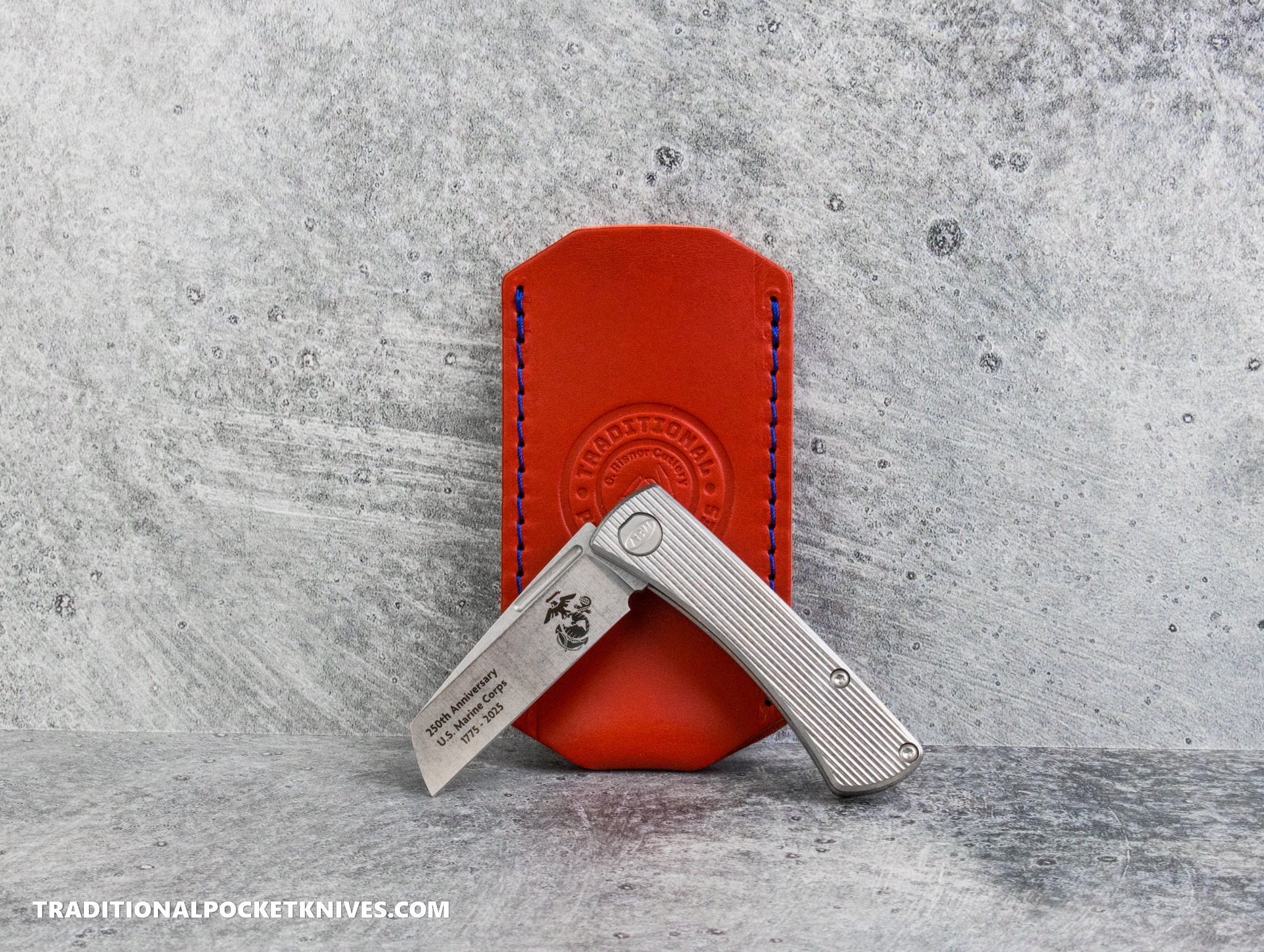 C. Risner Cutlery Premium Logo Leather Knife Slip Small - Marine Corps "Blood Stripe" Red Buttero