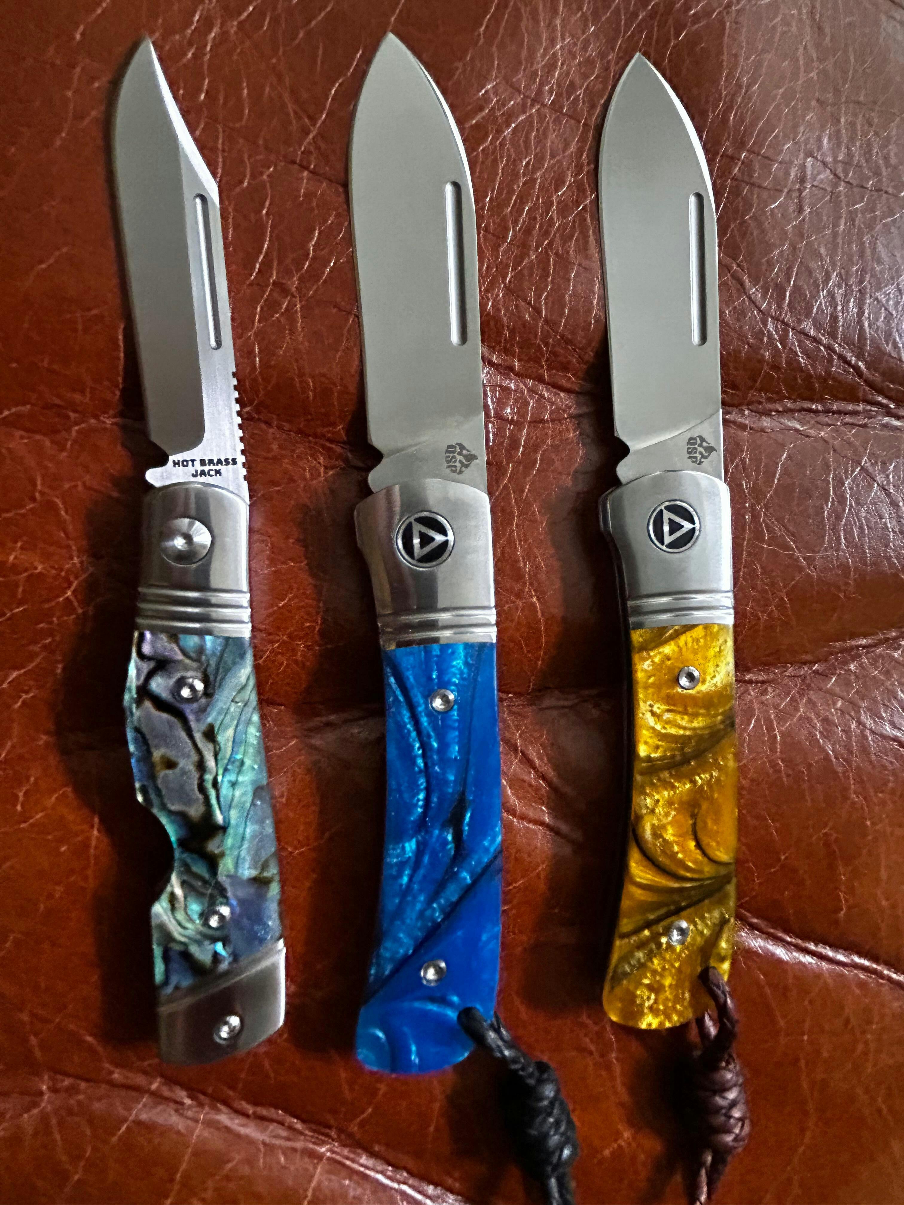 I have Hedgehogs in a couple of steels and several handle versions, but these latest acrylic versions are among the most attractive. This bumblebee acrylic, goid with black streaks is the perfect color to go with a brown or black slip, and for not a lot of money you’re getting a really nice looking package. These Hedgehogs also have great walk and talk, are always centered, are sharp and easy to sharpen. 14C28N is a great steel for daily use. TPK has several versions, just get one you won’t be sorry.