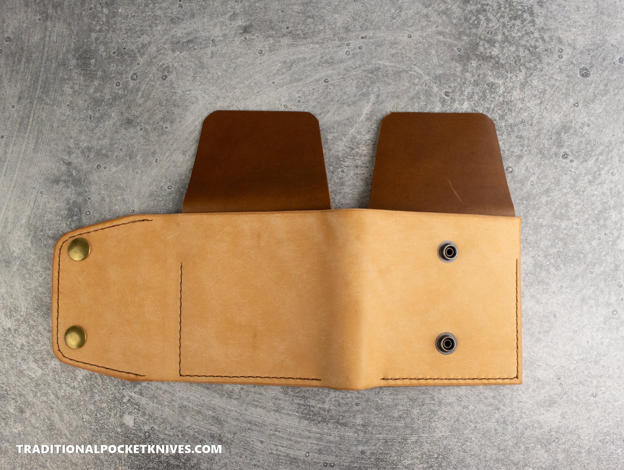 Inspired by the craftsmanship of the knife-maker’s trade, the Cutler’s Wallet is a refined way to stay organized. This hand-made organizer carries 4 traditional slipjoint knives, cash, an EDC pen, cards, stickers, etc. It is the perfect companion for daily carry, travel, or wheeling-and-dealing at your local knife show.  Constructed from 5 oz and 3 oz Italian veg-tan leather.
