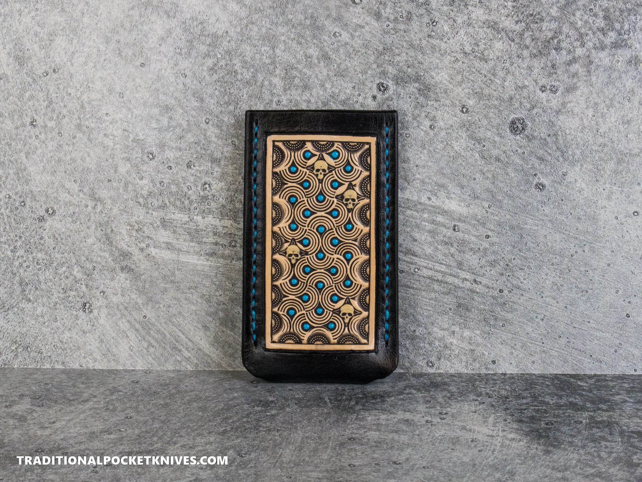 Leather Color: Black / Natural, Turquoise Dots, Glow Skulls.