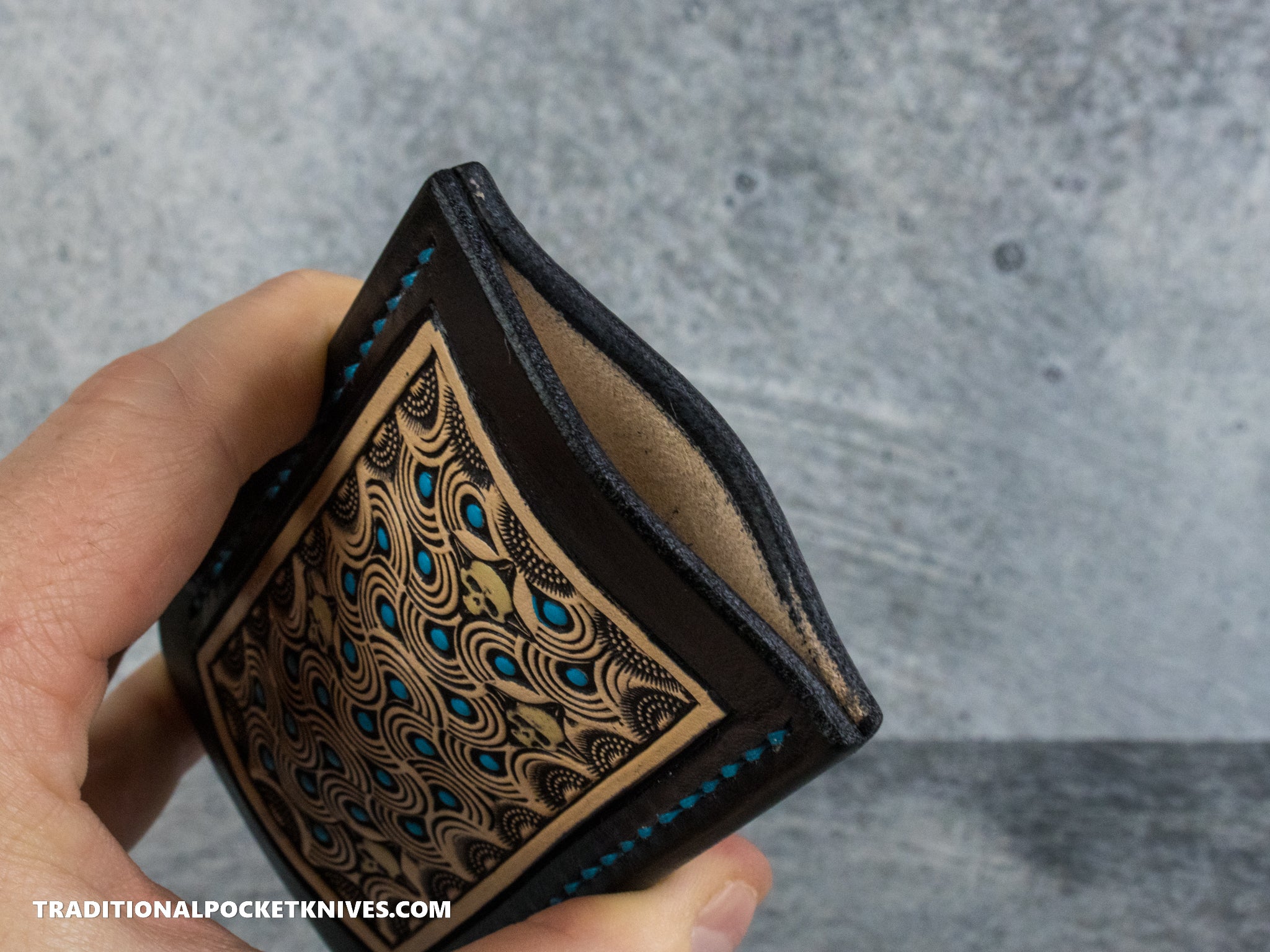 1. Tight is right! I use thick leather to achieve crisp tooling impressions, retain your knife safely and securely, and by gently squeezing the side of the slip, release it easily into your hand. Initially, your slip will be tight but will naturally mold to the knife over a short period of time. There is no need to wet-form the slip.