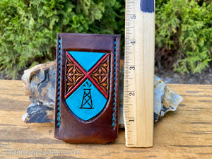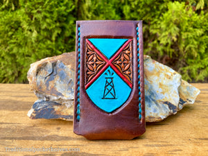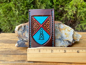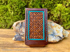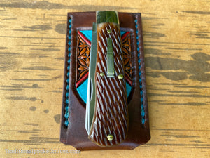 Leather Color: GEC English Whittler Front, Petal box with Turquoise Border Back.