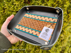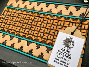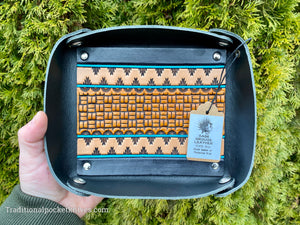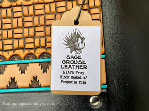 Sage Grouse Leather RIATA Packable Tooled Leather Catch-All Tray Block Basket w/Turquoise